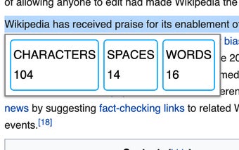 Character Counter là một tiện ích hữu ích cho Chrome cung cấp một đếm chính xác của ký tự, khoảng trắng và thậm chí cả từ. Được phát triển bởi shohori13, công cụ miễn phí này hoàn hảo cho bất kỳ ai cần theo dõi độ dài của văn bản của họ.